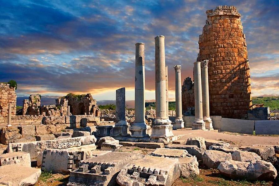Aspendos: Eine der wichtigsten pamphilianischen Städte. Es liegt an der Stelle, an der der Kopru-Fluss ins Meer mündet. Einst ein wichtiger Hafen und ein Handelszentrum, hat es den Ruf, die besten Pferde der Welt zu züchten. Sehenswert sind das Odeon, die Basilika, die Galleria und die Brunnen.